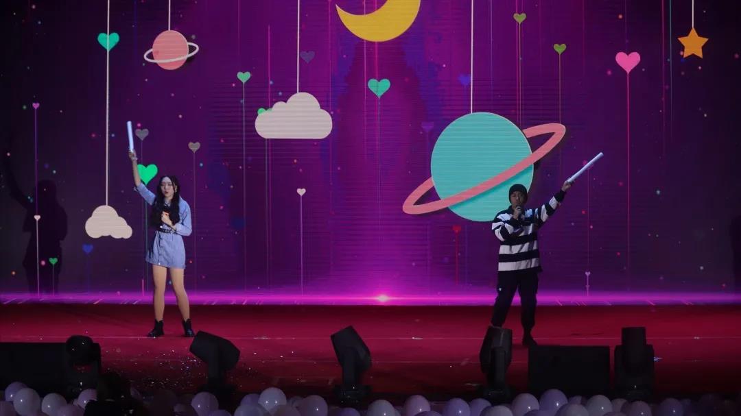 全黑的幕景搭配上闪动的点点荧光,确认过眼神,是荧光舞的感觉。《荧光舞》犹如一粒火星,点燃了全场的气氛。