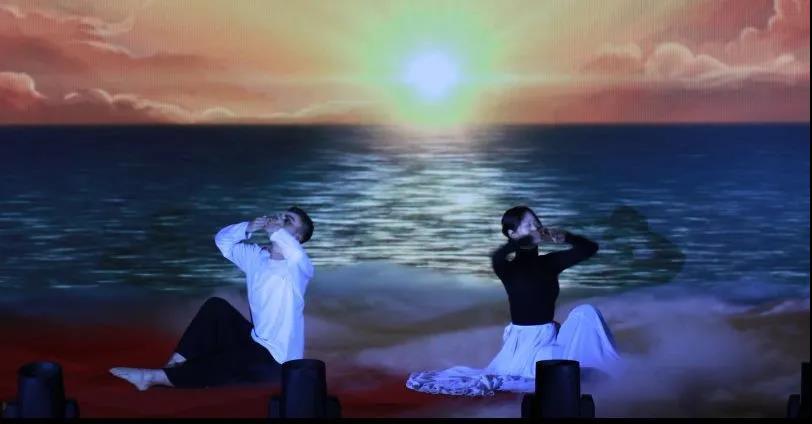 一台电子琴,一架古筝,余音袅袅,风风韵韵奏出了空灵悠远的意境;两位舞者翩若惊鸿,婉若游龙舞出了鲲与椿至死不渝的爱情,乐器《大鱼海棠》中国风十足!