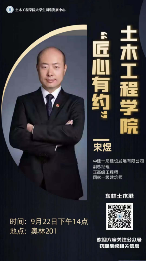 首先中建一局建设发展有限公司副总经理宋煜为大家做就业指导。近几年学院本科生考研率持续攀升,二战同学大幅增加,内卷让同学们幸福指数下降,就是否一定考研这一问题,宋煜结合自身经历谈到本科先就业,工作中读在职研究生也能实现个人的成功,针对建筑行业是否值得继续坚守这一问题也进行了分析,先从全球建筑行业来看,我国建筑实力占比占优,再加上技术管理力量不容小觑,国内近几年工程类就业人数和劳动生产力都处于增长趋势,并且随着云技术、大数据、互联网、5G区块链等技术的出现,智慧城市建造为建筑行业带来了新的机遇和挑战,促使各个建筑施工的参与方向新基建靠近。同时宋煜还介绍了公司在超高层建筑、高科技电子厂房、数据中心、大型公共智能建筑领域确立行业领军优势,荣获国家级省部级奖项数百项,各类精品、地标建筑创下了多项世界和行业之最,并结合自身经历鼓励同学们扎根基层、为祖国的基础设施建设贡献自己的力量。目前中建一局发展建设公司共有121位东林校友,在他们其中有公司班子成员,中建总公司项目管理专家,项目总监,分公司总经理,公司中层骨干。
