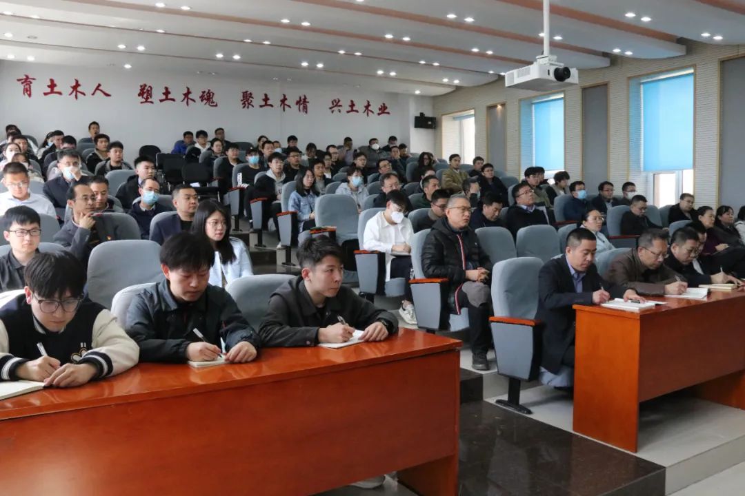 土木与交通学院于4月23日中午在主东301召开思想主题教育动员部署大会,对学院主题教育工作进行部署。会议由程培峰院长主持,学院党委书记李洪峰做动员讲话,学校党委副书记、纪委书记宋吉红出席会议。学院领导班子、各党支部书记及委员、教师和学生代表参加本次会议。
