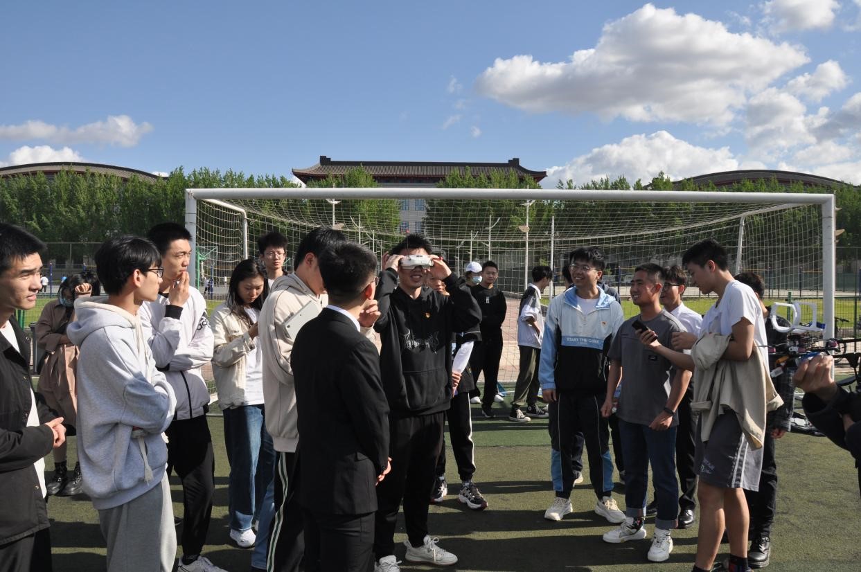 参观结束后,全体同学前往军工操场,观看哈工程航建学院航模队表演活动,同学们与航模队进行交流学习,进行航模操作体验。