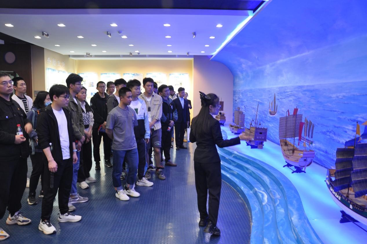 开幕式后,全体学生前往启航活动中心一楼船舶馆进行参观学习,在讲解员的讲解下,学生了解到哈尔滨工程大学船舶方面丰硕的科研成果和我国船舶工业的成就。