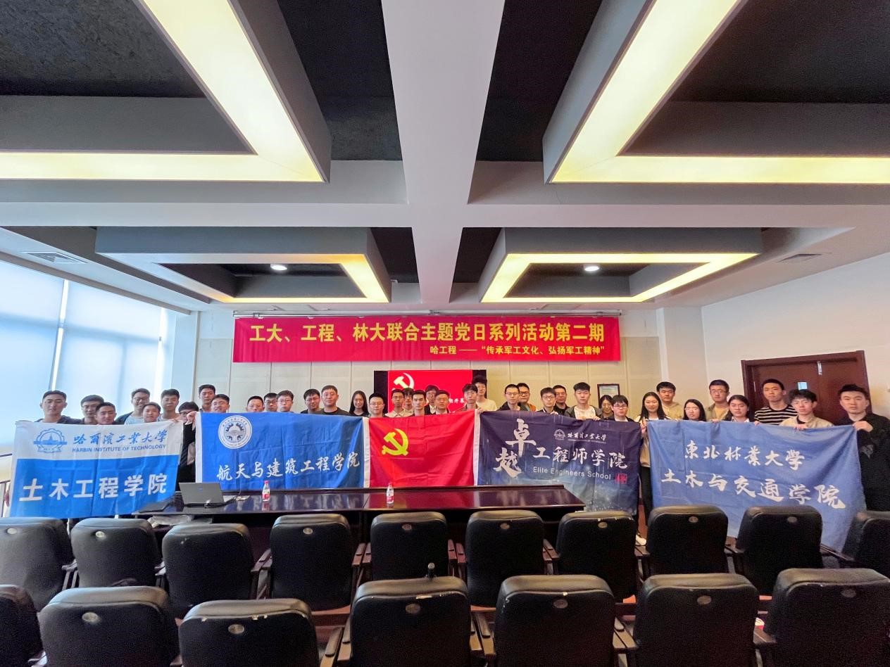 为创新党日活动形式,增加对党史知识理论实践化的机会,加强兄弟院校的交流与合作,增加三校学生党员之间的密切联系和友谊,增强黑龙江省高校学生党员属地认同感,深刻认识青年在中华民族伟大复兴中的历史使命,东林联合学生党支部(土木与交通学院2022级本科学生党支部+土木工程学院2021级本科学生党支部)与哈工大联合学生党支部(土木学院22硕6支部、卓工学院22级联合党支部)、哈工程联合学生党支部(土木工程系第2党支部+22硕4党支部)开展三校六支部联建党日活动第二期。