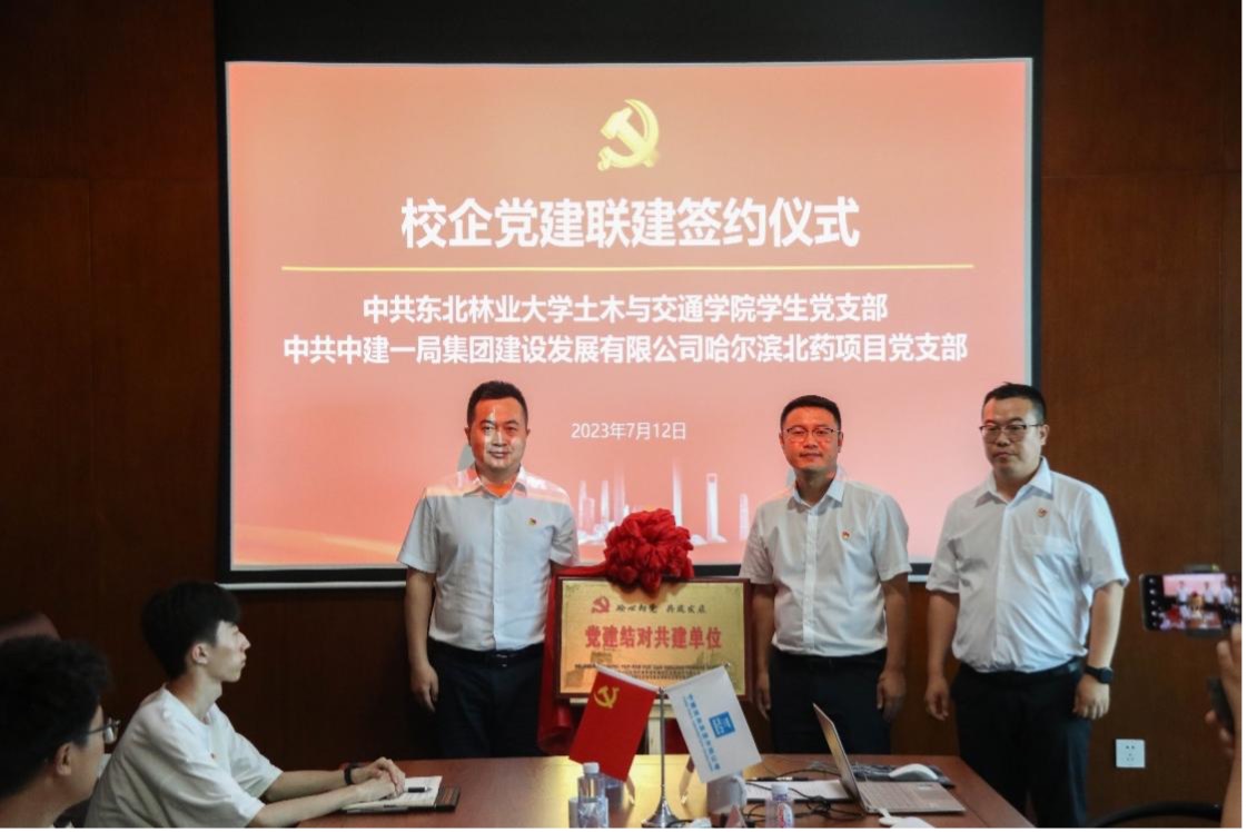 为进一步加强党组织建设,增强党组织战斗力,提升党员同志业务水平,充分发挥党员干部的先锋模范带头作用,东北林业大学土木与交通学院各学生党支部特与中建一局集团建设发展有限公司东北分公司党总支部以及中建一局建设发展公司哈尔滨北药项目党支部结对共建并进行签约。