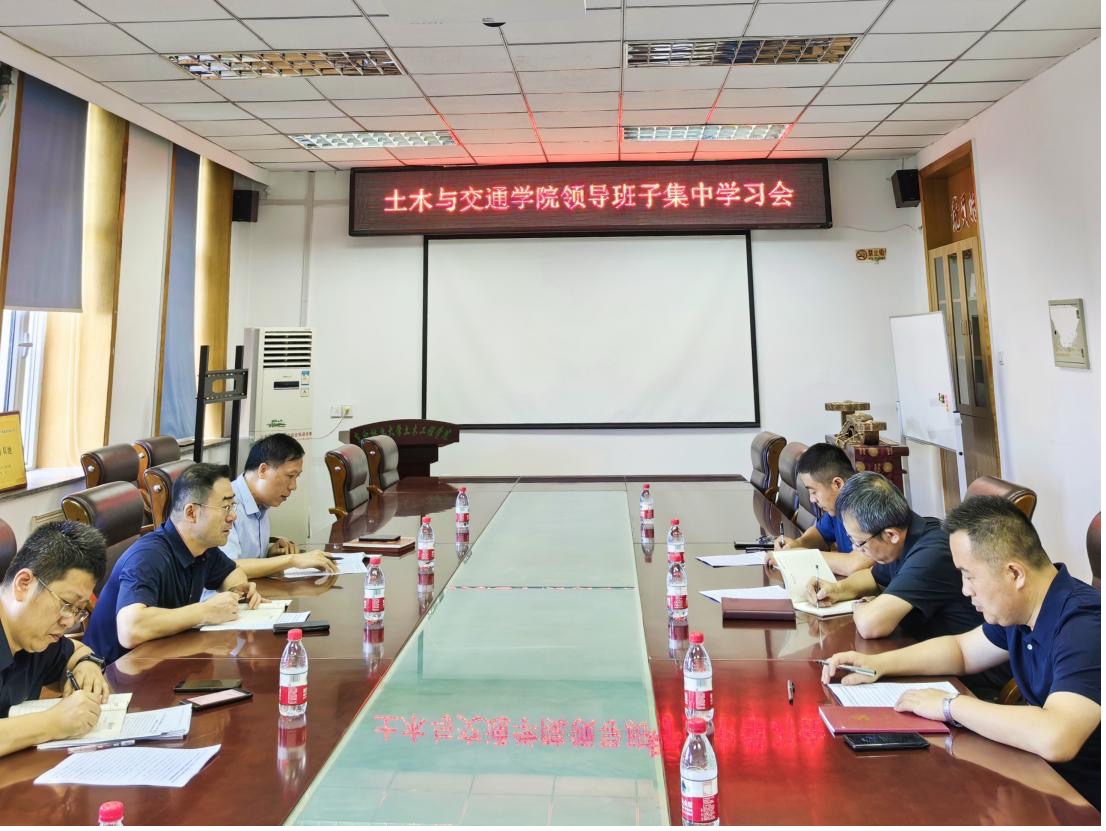 8月23日上午,土木与交通学院领导班子在主东404会议室举行集中学习会。会议由学院党委书记李洪峰主持。
