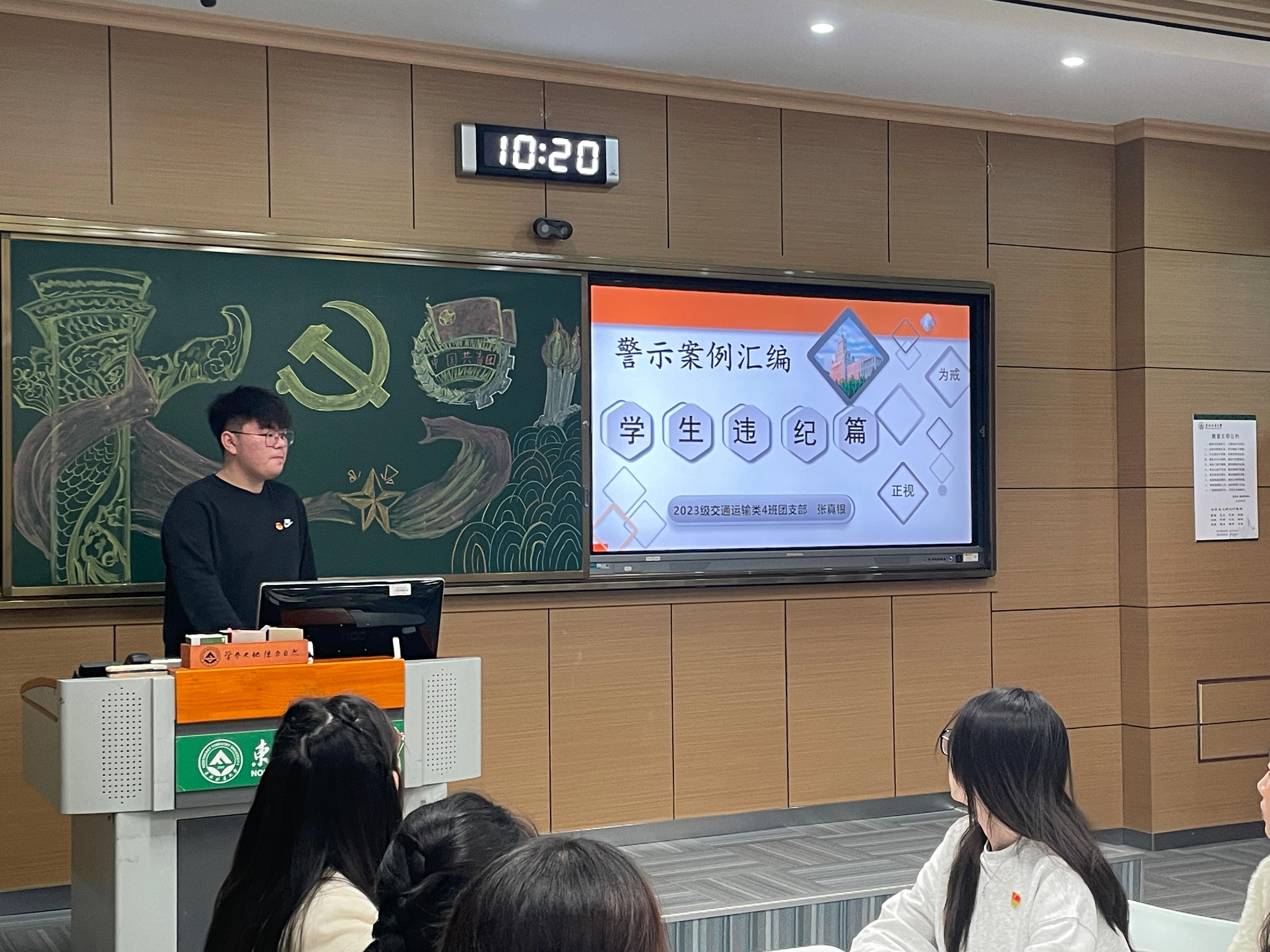 人生有很多岔路,选择了什么样的路,就决定了你会成为怎样的人,过怎样的生活。如果我们在青年时期没有学会脚踏实地,打下坚实的思想品德基础,就会步入歧途。2023级交通运输类4班团支部张真银同学带学“学生违纪警示教育案例”,引导同学们积极弘扬正能量,树立正确的世界观、人生观、价值观,成长为中国特色社会主义的合格建设者和可靠接班人。