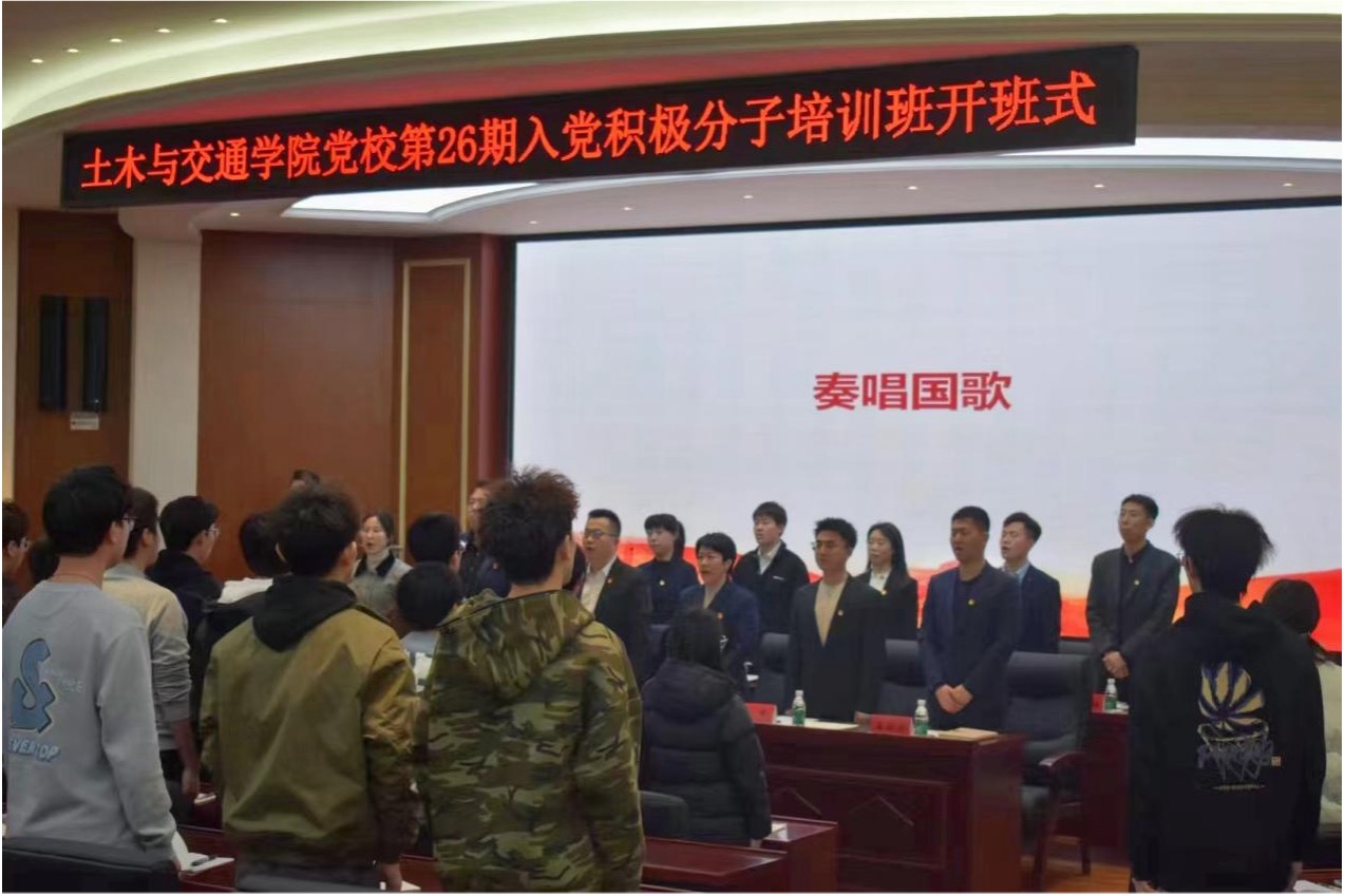 为全面宣传贯彻学习习近平新时代中国特色社会主义思想,深入学习党的二十大精神,全面贯彻落实党的教育方针,巩固拓展党史学习教育成果,进一步做好发展党员工作。土木与交通学院于4月11日,于动保楼331成功举办第26期入党积极分子培训班开班仪式暨第一课。