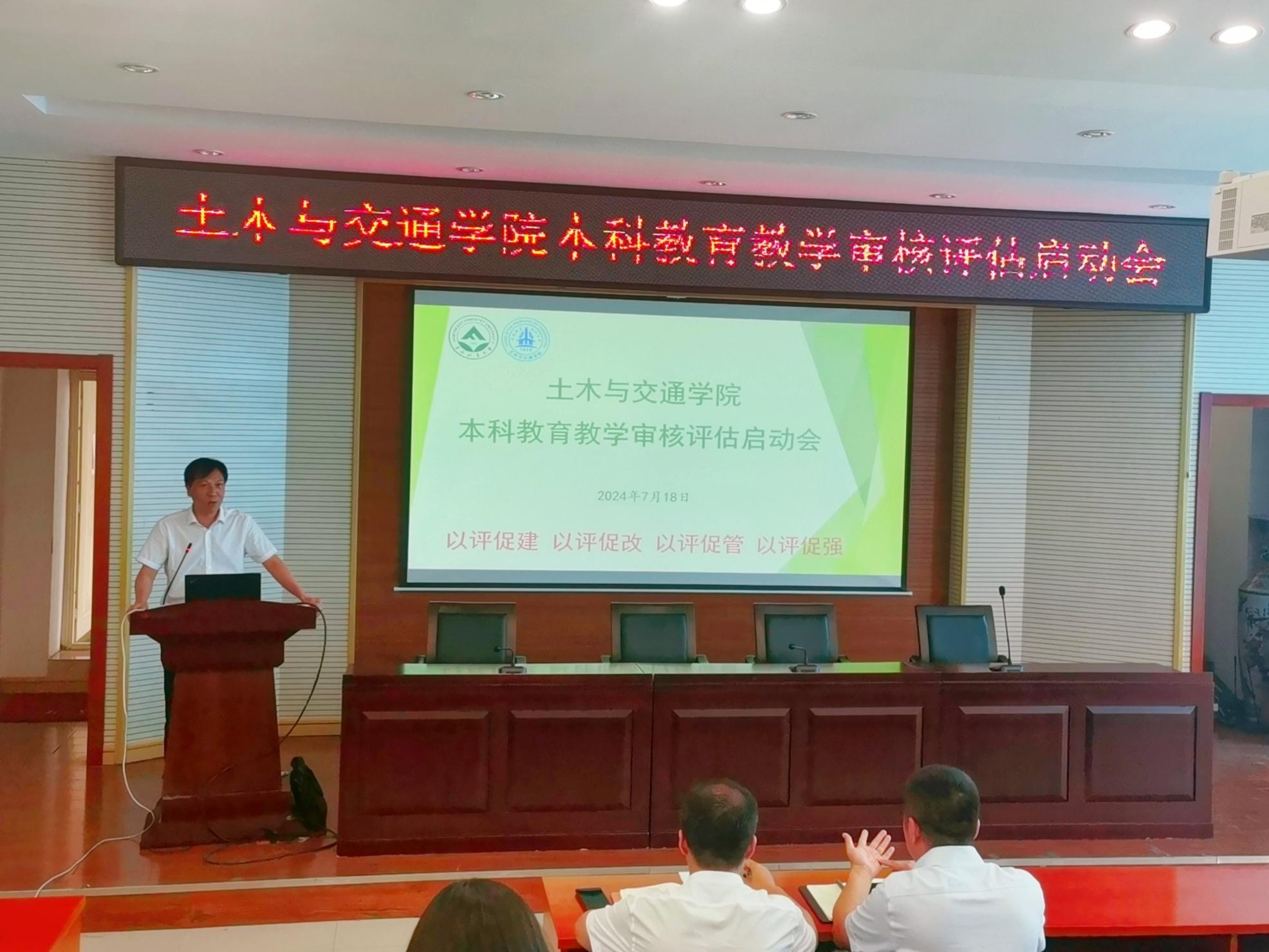 7月18日下午14:00,土木与交通学院在主东301会议室召开了本科教育教学审核评估启动会,学院领导班子、学院全体教师参加会议,校评建办、本科生院质量管理与评估中心李德才副主任和董天贺老师莅临指导,会议由谢启芳院长主持。