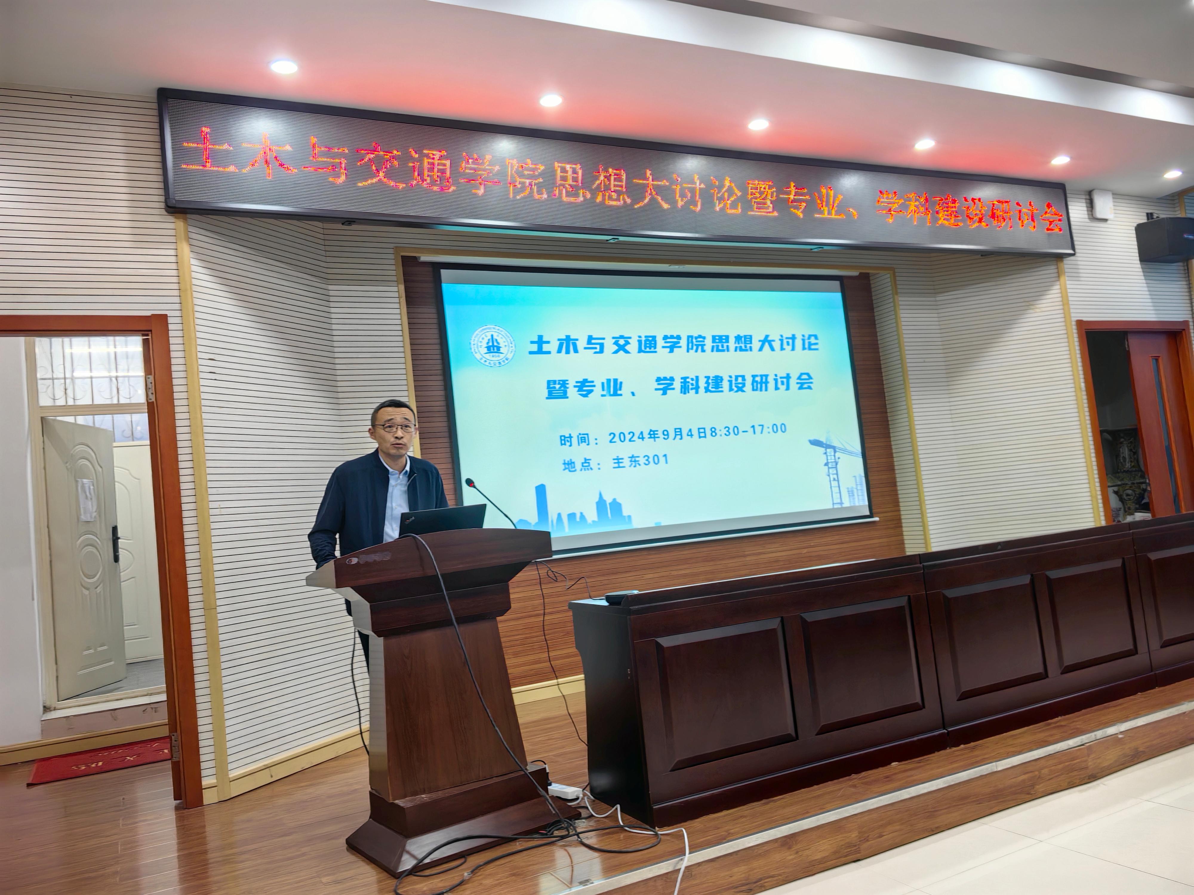 为深入推进学校“教育强国、东林何为”教育思想与高质量发展大讨论,进一步推进教育教学走深走实,明确学院专业、学科建设与发展方向,提高人才培养质量,土木与交通学院于9月4日在主东301会议室召开土木与交通学院思想大讨论暨专业、学科建设研讨会。学校党委副书记、纪委书记宋吉红同志,研究生院常务副院长陈广胜同志出席了会议,学院领导班子成员、全体学院教师参加会议。会议由学院党委书记于鹏同志主持。