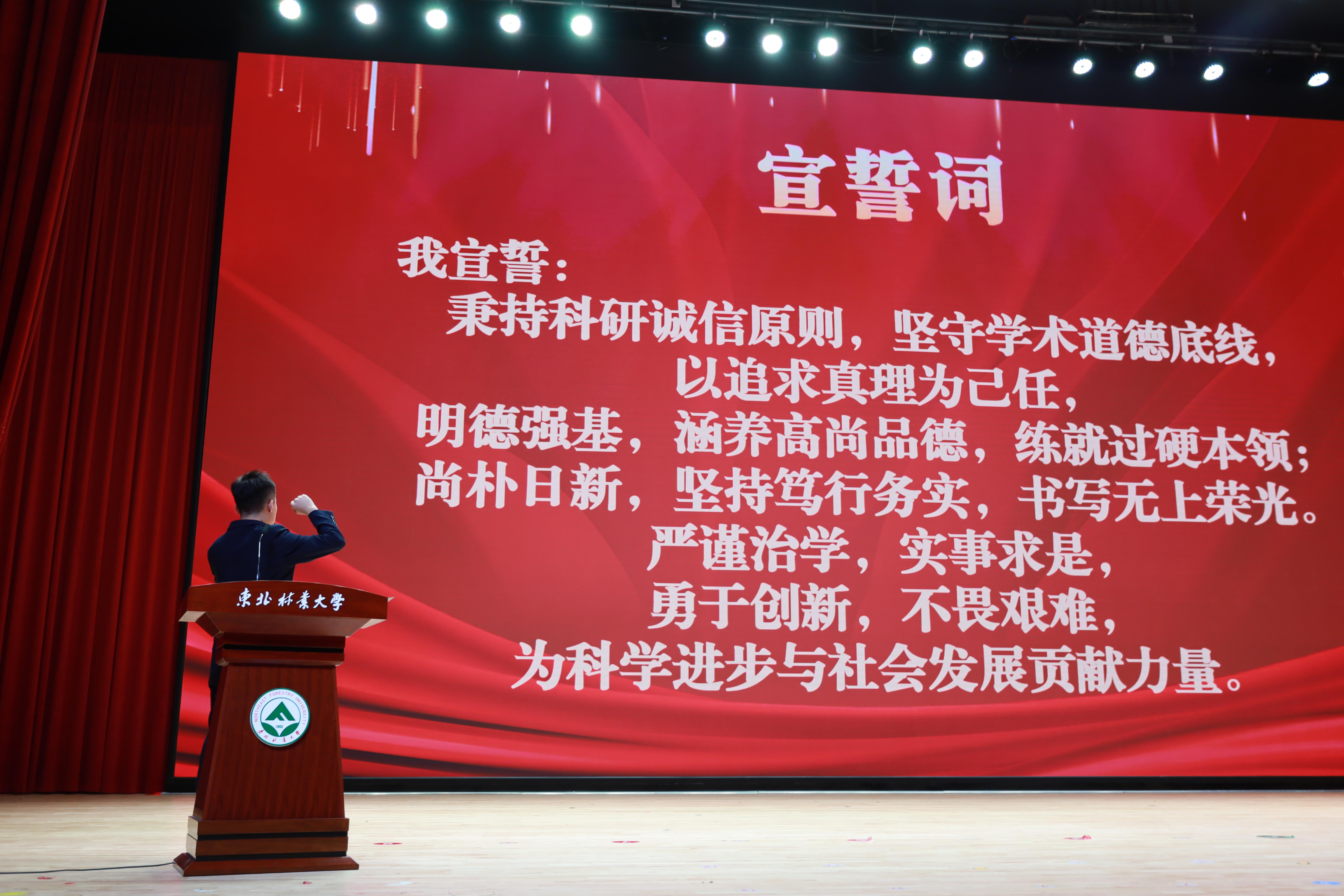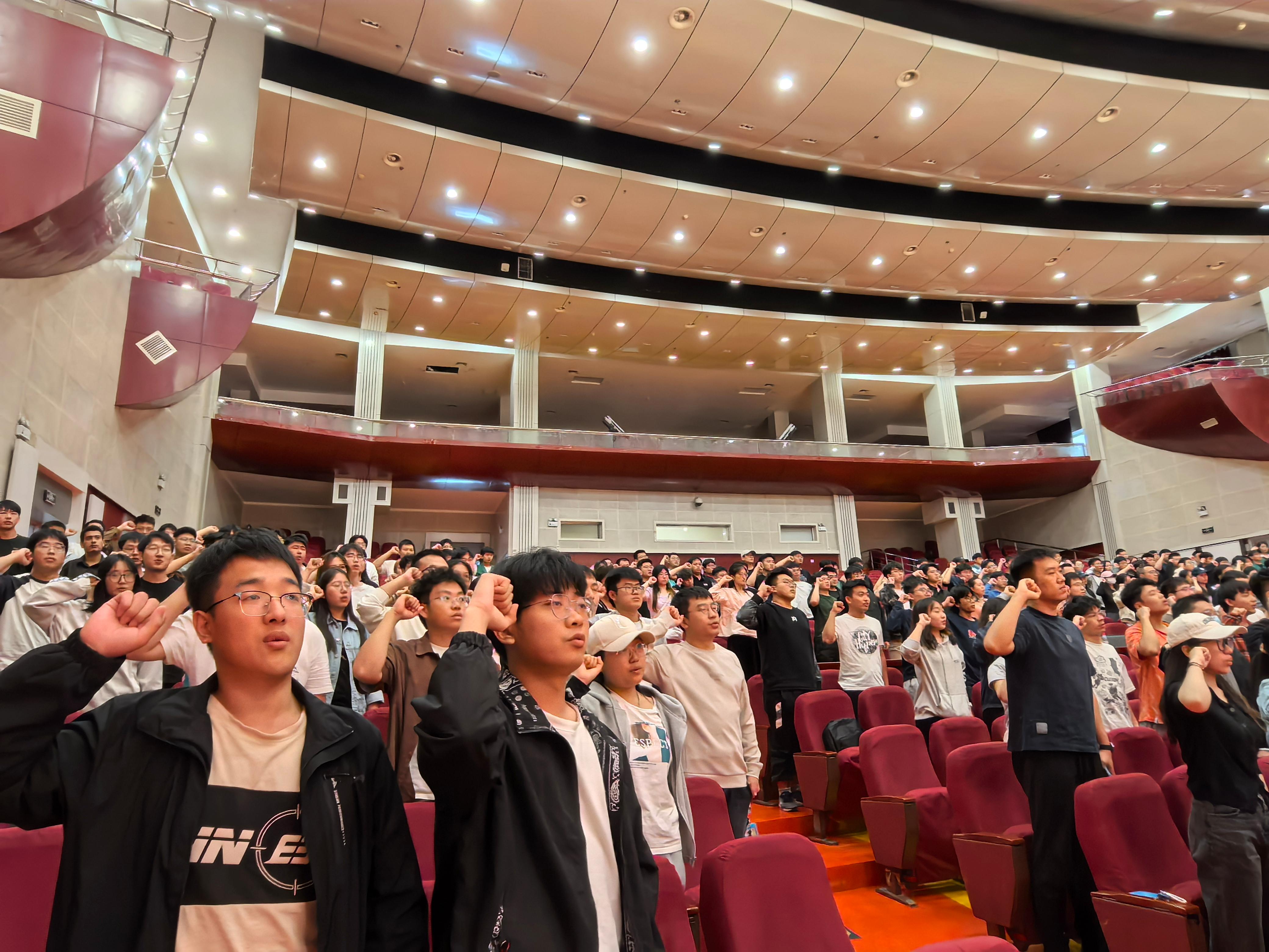 最后,研究生辅导员肖玉良老师带领新生激昂宣誓,“我们将践行严谨勤奋,求实创新的优良校风。志存高远,勤勉笃行,开启勇于探索、追求卓越、创造未来的筑梦工程。