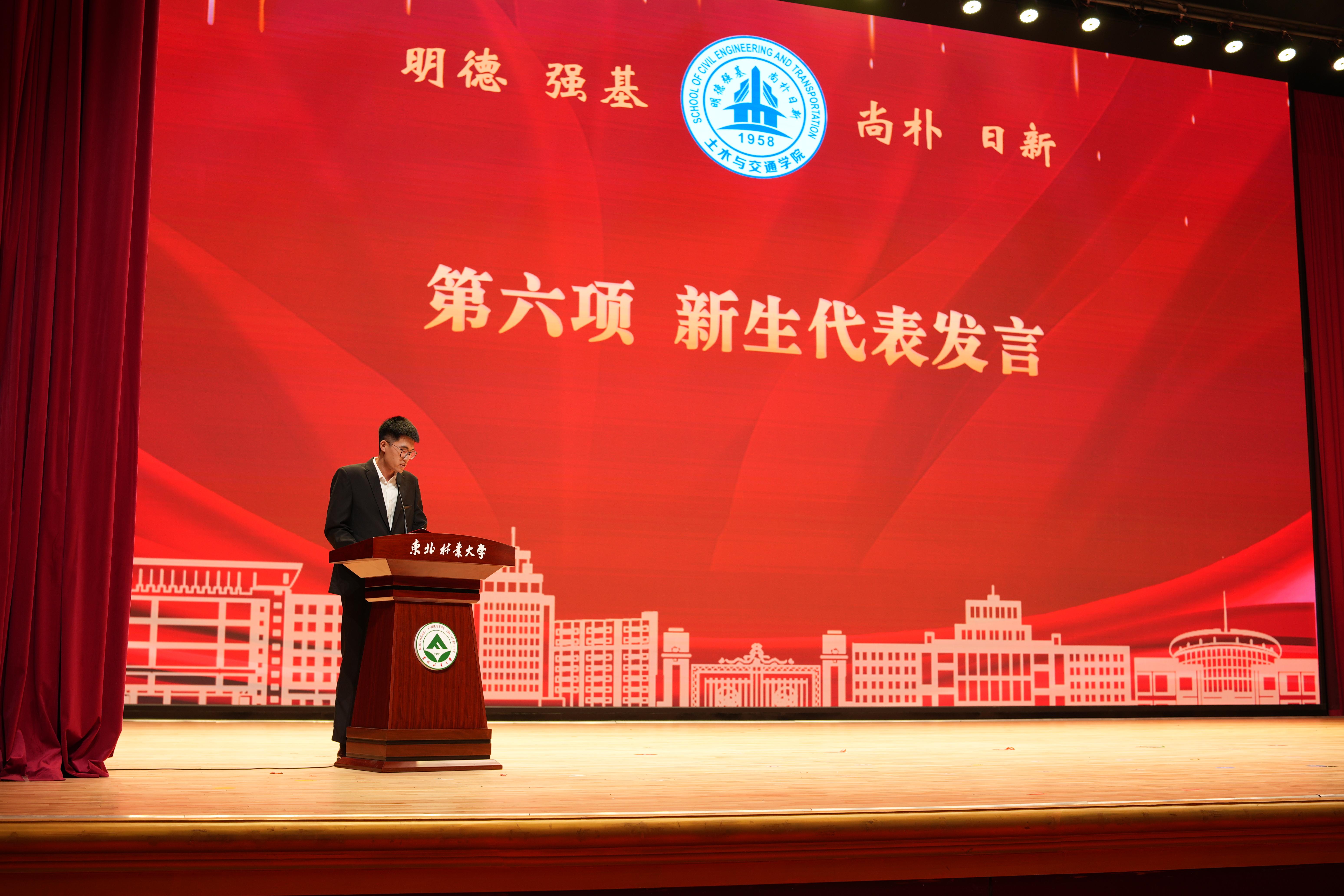 新生代表王文志怀揣着对未来的憧憬和期待激情发言,“愿在未来的生活中,能从思考中认识自我,从学习中领悟真理,从实践中赢得价值,从追求中汲取力量。未来将以饱满的热情和积极的态度投身到学习和研究中,不辜负学院和导师的期望。”