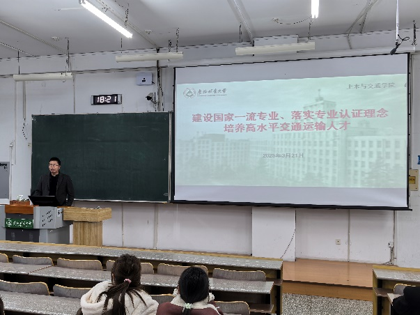 为全面落实立德树人根本任务,扎实推进本科教育教学改革,梳理教育教学思路,凝练人才培养特色,营造良好的教育教学质量文化,促进本科教育教学审核评估自评自建,全面提高人才自主培养质量,按照《关于开展本科教育教学质量提升“六说”系列活动的通知》,交通运输专业召开了“主任说专业”专题活动。