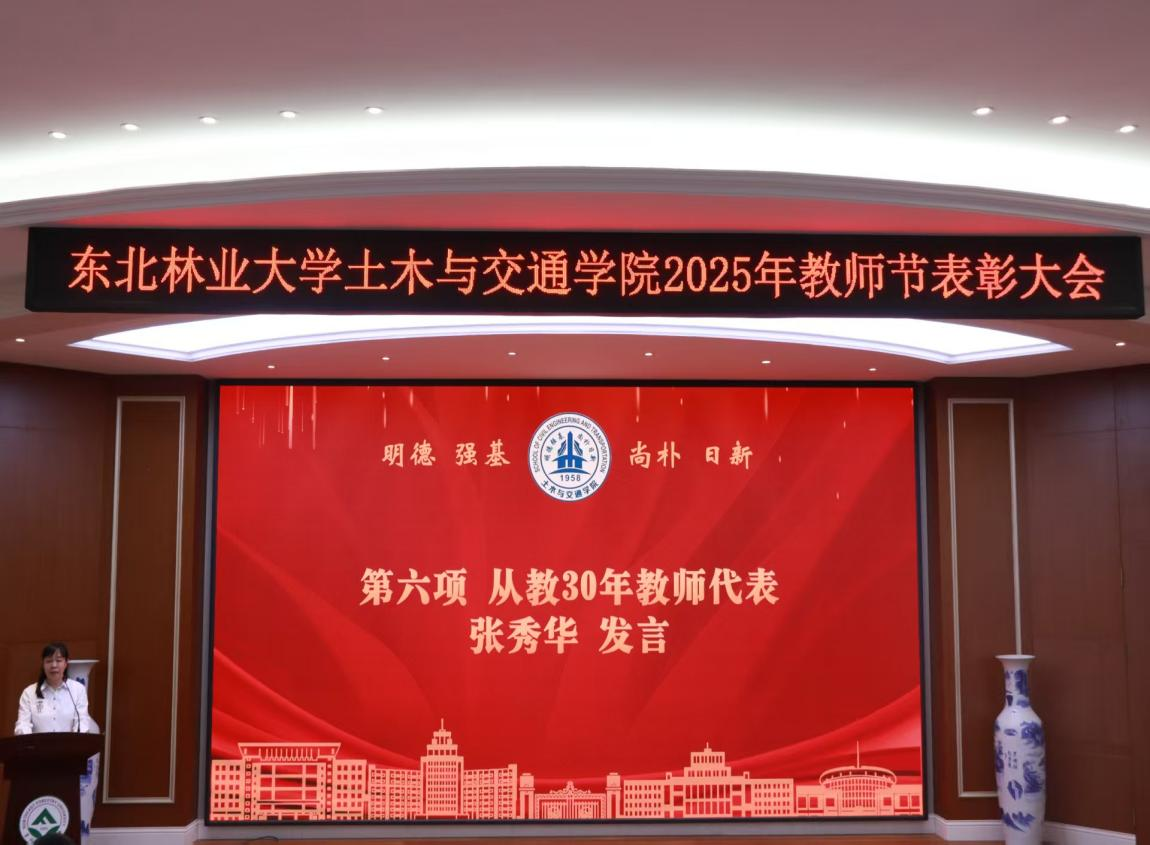 从教30年教师代表张秀华深情回顾了三十载春风化雨般的执教生涯,谈到坚守严谨工匠精神与“理论与实践并重”的重要性,教育应赋予学生如钢结构般的稳定性、承载力、韧性与精确度,并祝愿教师们都能成为学生成长中的“刚性节点”,学子都能成为祖国建设中的“高强钢材”,在时代应力下淬炼强度,彰显韧性。
