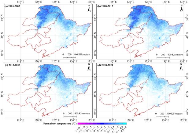 图1 30米分辨率东北地区多年冻土温度空间分布图