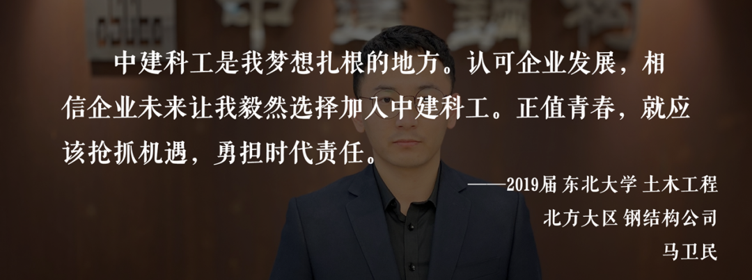 中建科工集团有限公司(原中建钢构有限公司)隶属于世界500强中国建筑股份有限公司,是中国最大的钢结构产业集团。正是这样的平台能给员工提供更多标准化的工作机会和先进思维赋能,得以让王阳在职业生涯拥有一个良好的开端。